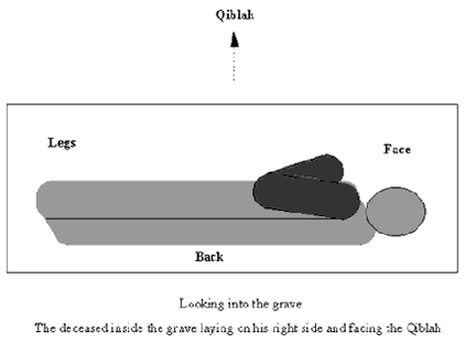 3. The body (janaza) is placed in the side niche, horizontally on the ground, with the head on the right and the face is directed to the Qibla.