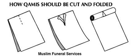 • The Qamees is then unrolled over the front of the body and once the body is covered then remove the satar (covering sheet)