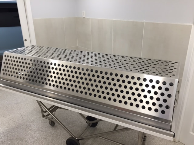 The deceased’s body should be washed in a clean, secluded, and private place where clean water and soap are available. Gloves must always be worn when handling and washing the deceased. The body of the deceased should be washed with water and, if available, lotus leaves, or camphor (to be used in the final wash). The steps of the washing should be done at least three times any more odd number of times as necessary to cleanse. Always be mindful of infection control and protecting the person performing the Ghusl. Our Ghusl facility provides disposable gloves, aprons and face masks. Bins for general rubbish as well as Hazardous waste bins for any contaminated waste removed from the body. Only use the hazardous bins for contaminated waste as there is an additional fee incurred to dispose of this separately.
